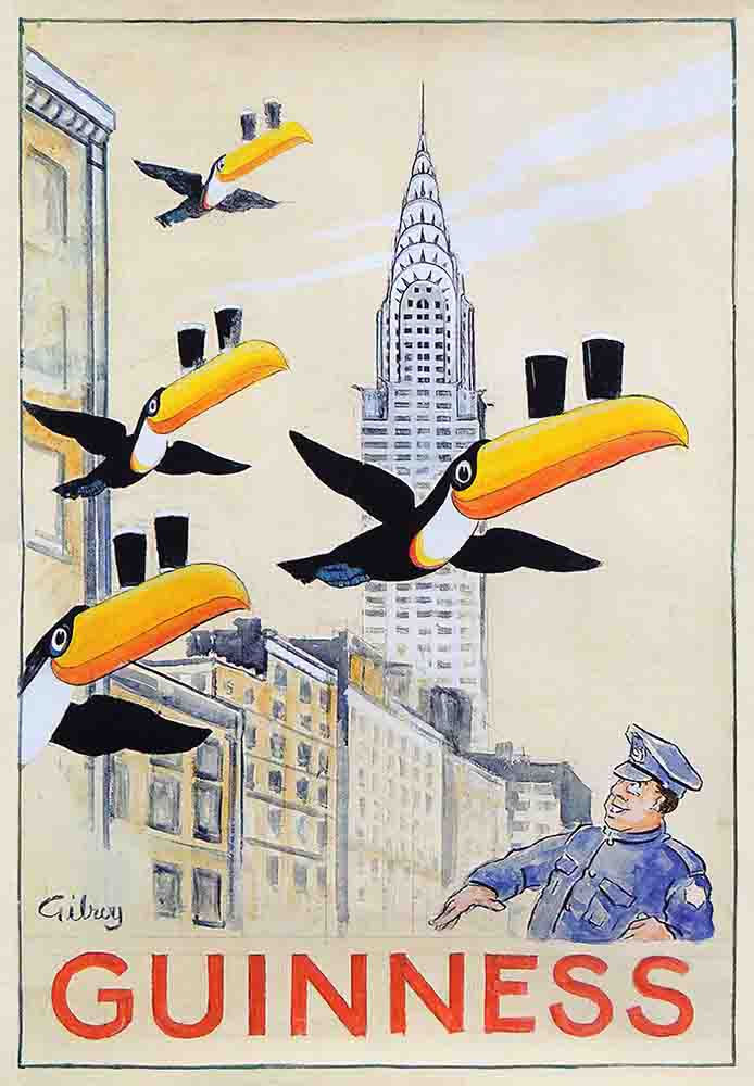 Reprodução de raríssimo desenho/maquete original, que deu origem ao poster da cerveja Guinness para promoção em França, datado do início do Sec. XX.